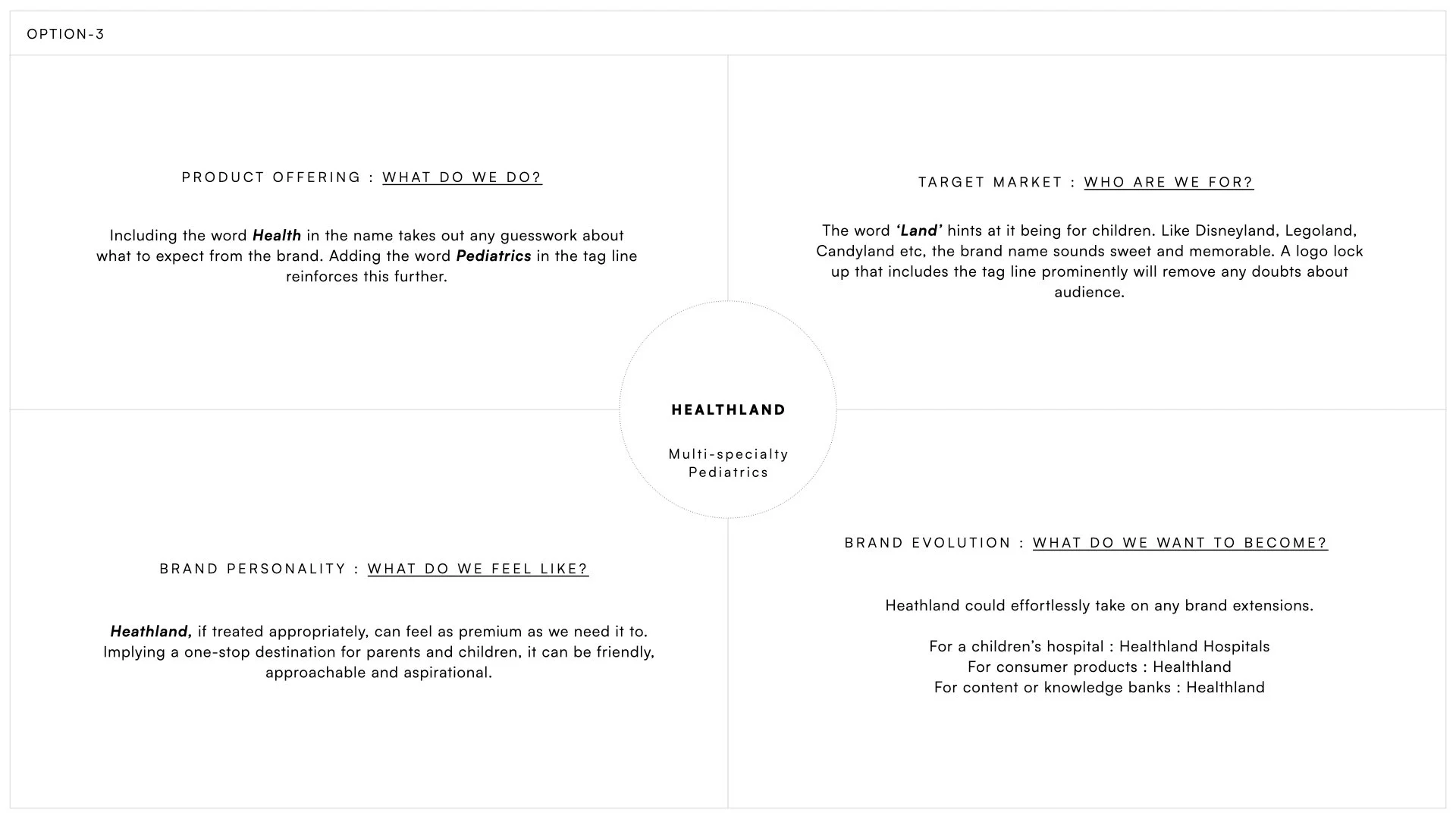 When it comes to clinics in Bangalore city, the market is saturated with hundreds of clinic, each with similar sounding names. The challenge here, was to identify a name that would stand out, that would be memorable and that could grow and evolve with the brand. Our strategy lead us to Healthland, a name that described a world of Health— a place you went to to be taken care of.